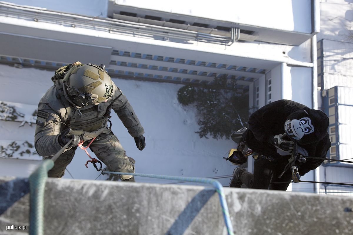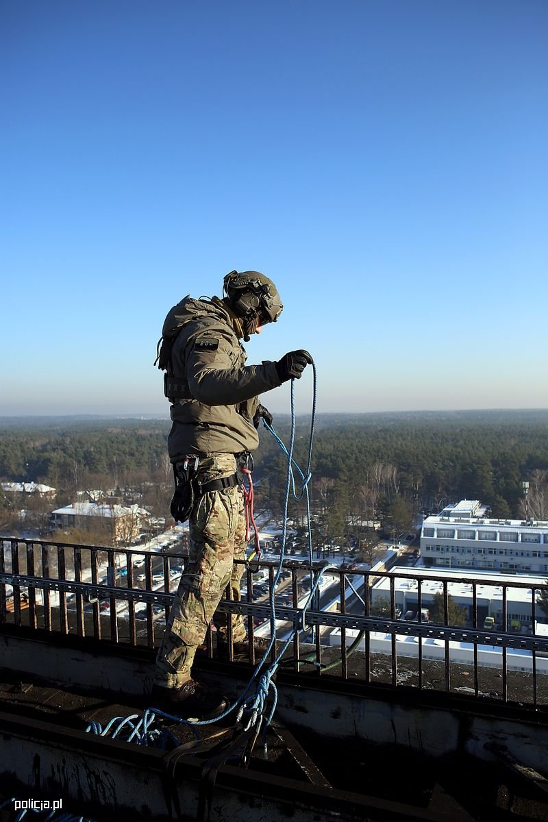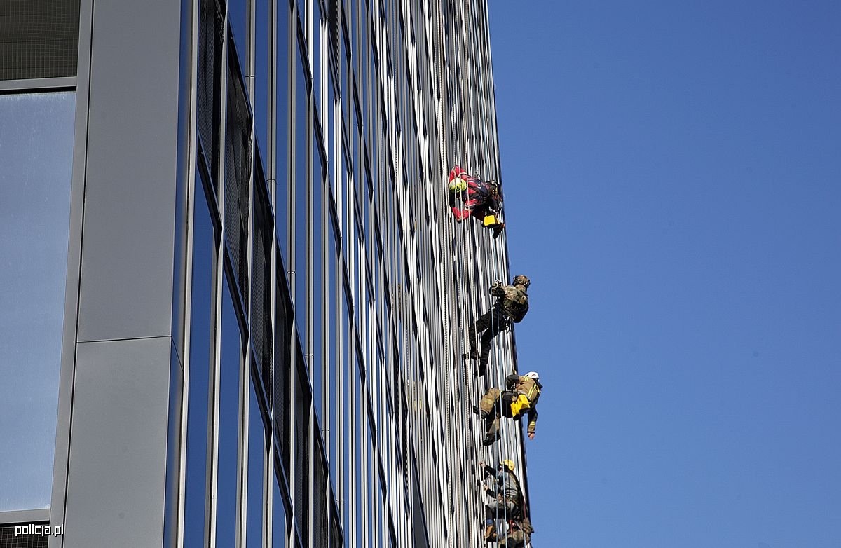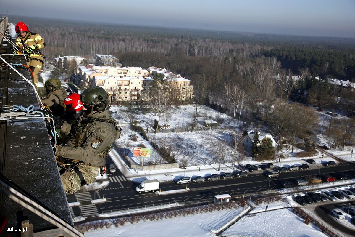 W tej niezwykłej akcji policyjnym kontrterrorystom towarzyszyli również policjanci ruchu drogowego z CSP, alpiniści z: High Five, Ochotniczej Straży Pożarnej w Kobyłce, Ząbkach i Radzyminie.