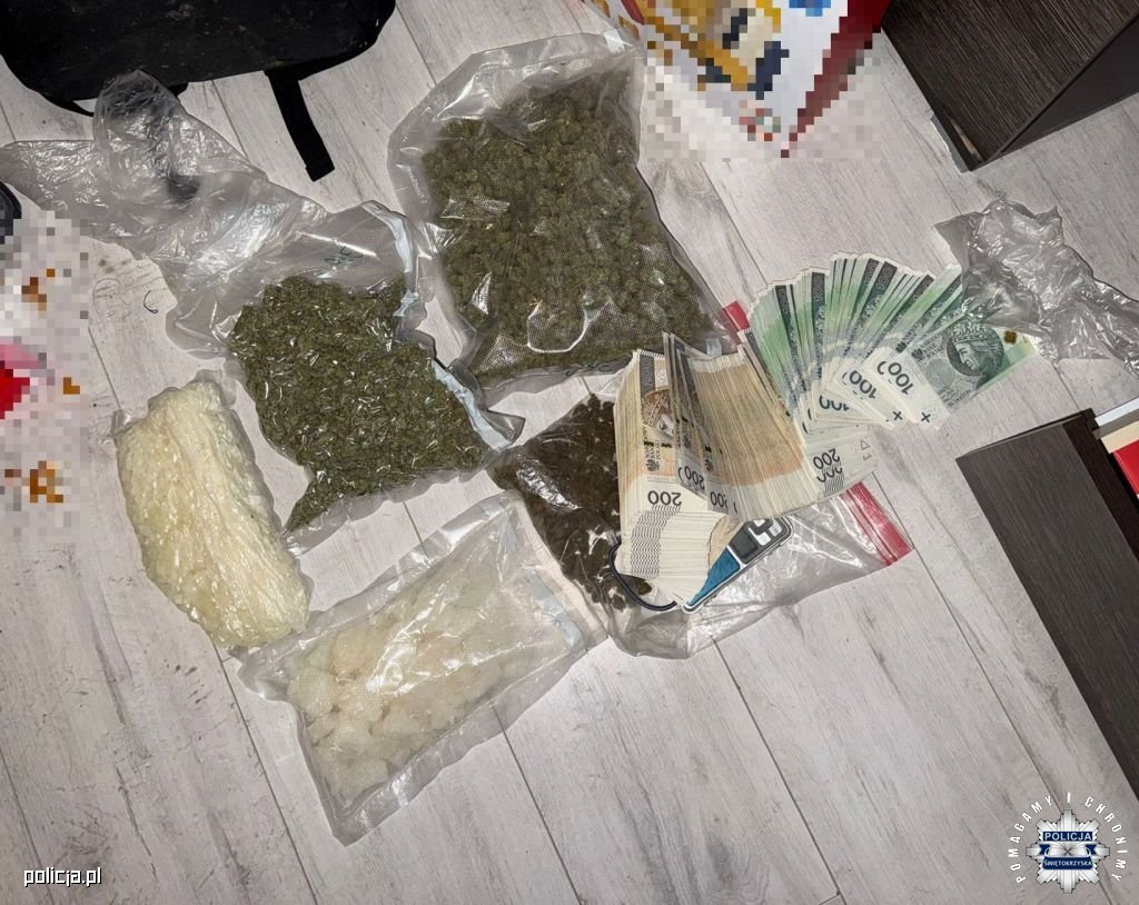 W poniedziałkowe popołudnie buscy kryminalni zatrzymali 22-latka, który miał ze sobą 50 gramów zabronionej substancji 3-CMC oraz dwie porcje suszu marihuany. Kolejne kroki doprowadziły do zatrzymania jego znajomego, 26-letniego mieszkańca powiatu pińczowskiego. W miejscu zamieszkania starszego z mężczyzn funkcjonariusze znaleźli i zabezpieczyli środek odurzający w postaci substancji 3-CMC o wadze ponad 1,1 kilograma, susz konopi innych niż włókniste o wadze ponad 700 gramów oraz porcję amfetaminy. Zabezpieczona została także gotówka w wysokości ponad 102 tys. zł. Obaj mężczyźni trafili do policyjnego aresztu. Dziś Sąd Rejonowy w Busku-Zdroju przychylił się do wniosku miejscowej prokuratury i zastosował wobec nich środek zapobiegawczy w postaci tymczasowego aresztowania na 2 miesiące.