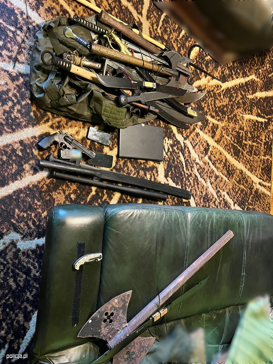 Kilkadziesiąt noży oraz miecze zabezpieczyli policjanci u 38-latka, który wygrażał nimi ekipie budowlanej, a potem policjantom