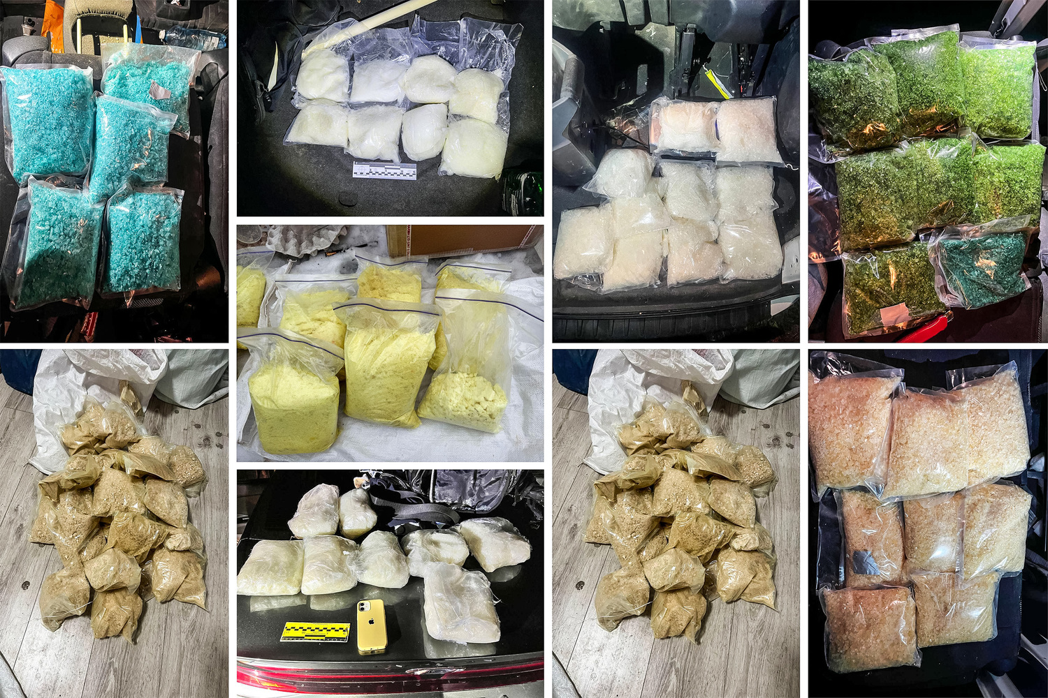 - 350 litrów prekursorów do produkcji mefedronu, alfa-PVP i amfetaminy.