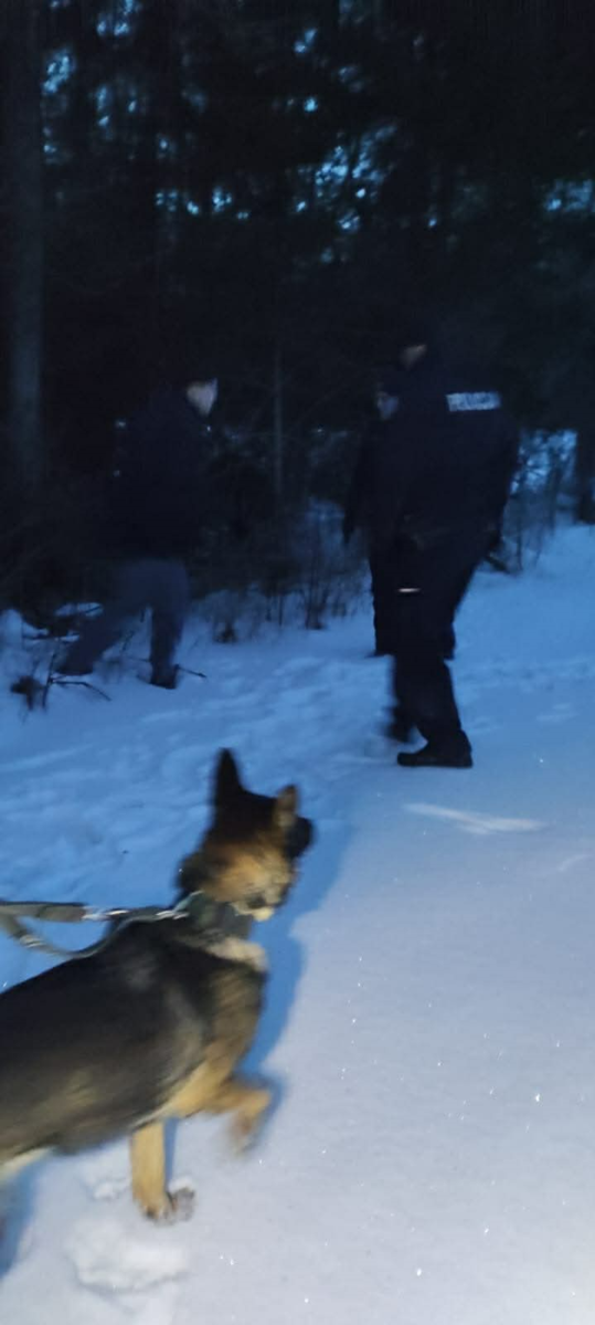 Mundurowi sprawdzali wytypowane tereny i już po około półtorej godziny Policjanci z Posterunku Policji w Bakałarzewie zauważyli ślady na śniegu, a patrolowo-tropiący pies służbowy podjął trop. Nika prowadziła przewodnika przez zalesiony i trudny do pokonania teren. Po przejściu prawie 3 kilometrów funkcjonariusze na skraju lasu zauważyli wyziębionego i wycieńczonego mężczyznę. Okazał się nim zaginiony 37-latek. Policjanci udzielili mu pomocy medycznej oraz przekazali zespołowi ratownictwa medycznego.