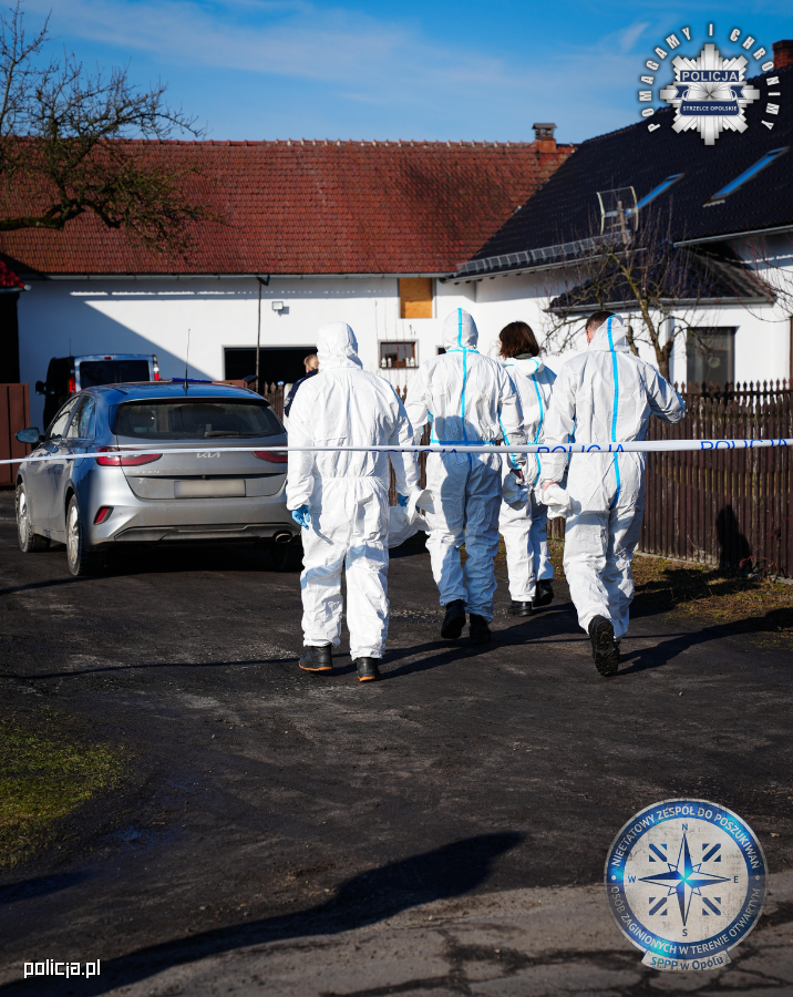 Równolegle do poszukiwań prowadzonych w terenie, policjanci dochodzeniowo - śledczy, pod nadzorem prokuratora, wykonywali czynności na miejscu zbrodni. Przy użyciu m.in. skanera 3D technicy kryminalistyki oraz biegli z Laboratorium Kryminalistycznego KWP w Opolu przez wiele godzin zabezpieczali ślady i dowody popełnionego przestępstwa. Szukali również przedmiotów oraz narzędzi mogących mieć związek z zabójstwem. W wielogodzinnych oględzinach uczestniczył także lekarz z Zakładu Medycyny Sądowej Uniwersyteckiego Szpitala Klinicznego w Opolu.