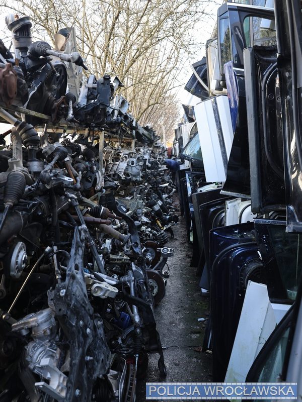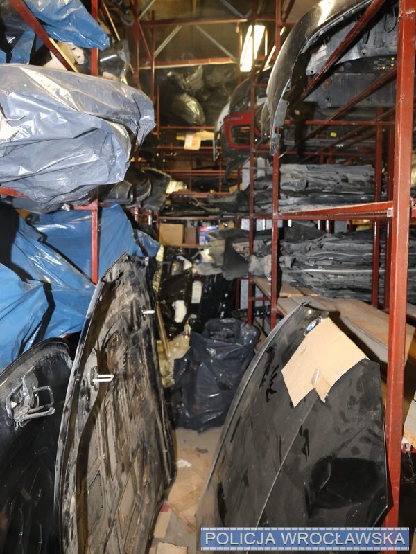 Podczas działań policjanci pionów kryminalnych zajmujący się przestępczością samochodową ujawnili tzw. dziuplę, w której przechowywane były części pochodzące z pojazdów mogących być przedmiotem przestępstwa. Na miejscu zabezpieczono elementy karoserii oraz wyposażenia samochodów, w tym m.in. zderzaki, kokpity oraz inne podzespoły. Wstępnie potwierdzono, że części pochodzą z co najmniej 13 pojazdów skradzionych głównie poza granicami naszego kraju.