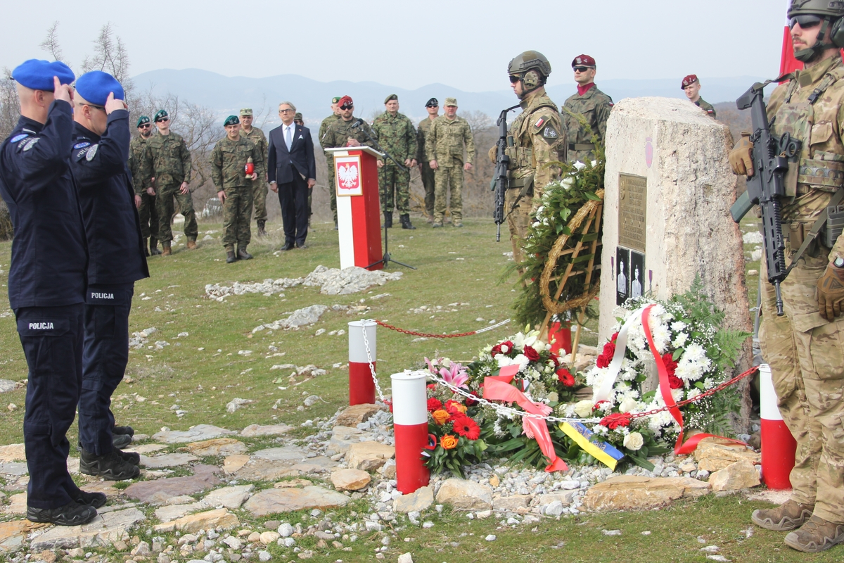 Podinsp. Marceli Abratkiewicz, dowódca XXXVIII Rotacji Jednostki Specjalnej Polskiej Policji w Kosowie, wraz z delegacją podległych mu funkcjonariuszy, wziął udział w obchodach 21. rocznicy tragicznej śmierci polskich żołnierzy, które odbyły się 4 marca 2026 r.