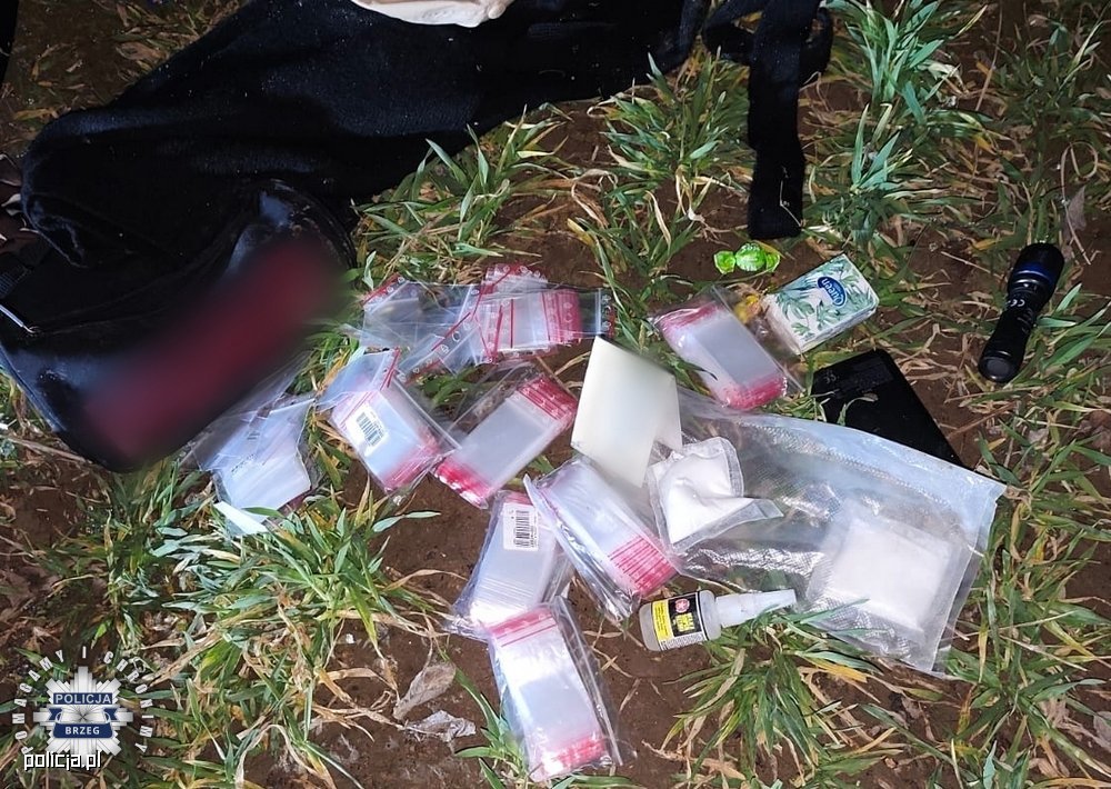 Już po chwili na miejscu pojawili się kryminalni. Funkcjonariusze grupy dochodzeniowo-śledczej wykonali dokumentację fotograficzną i oględziny miejsca zdarzenia oraz zabezpieczyli materiały dowodowe i podejrzane substancje znajdujące się w woreczkach. Śledczy zabezpieczyli prawie 1000 porcji amfetaminy, które teraz trafią do policyjnego laboratorium.