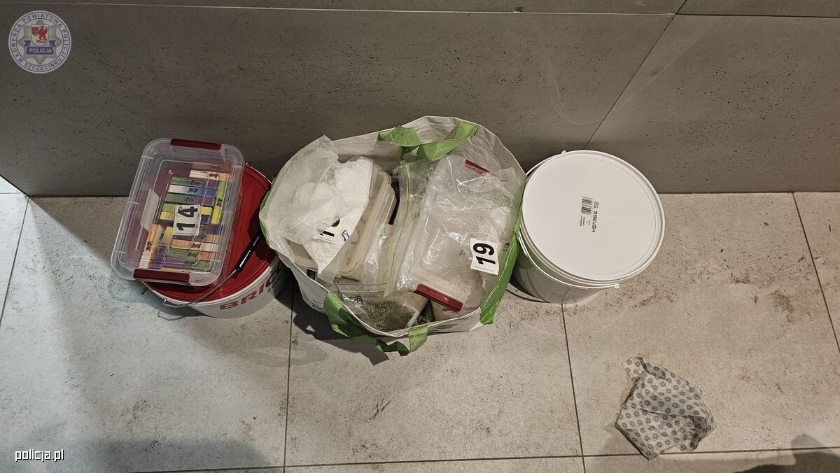 W mieszkaniu mundurowi zabezpieczyli ponad 7 kilogramów narkotyków oraz 13 500 zł. w gotówce. Wykonane przez technika kryminalistyki badanie potwierdziło, że jest to marihuana, amfetamina, tabletki ecstasy oraz mefedron. Z zabezpieczonych ilości można było przygotować ponad 7 125 porcji dilerskich oraz 141 sztuk tabletek co daje ponad 350 000 zł czarnorynkowej wartości.