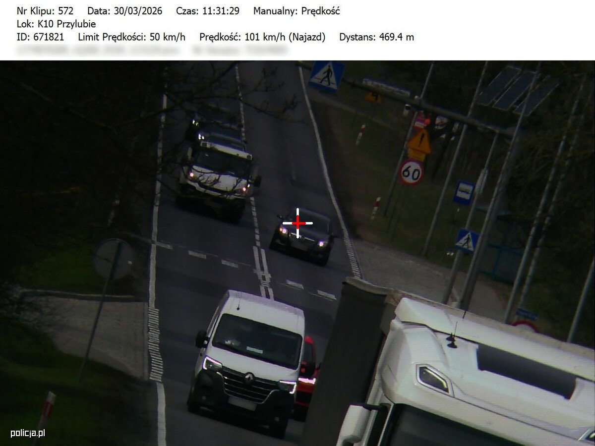 Do zdarzenia doszło w miniony poniedziałek, 30.03.2026 r., na drodze krajowej nr 10 w Przyłubiu, w powiecie bydgoskim. Policjanci Wydziału Ruchu Drogowego Komendy Miejskiej Policji w Bydgoszczy kontrolowali prędkość z jaką poruszali się kierowcy na tej drodze. Jednym z nich był mężczyzna kierujący Oplem. Pomiar wykazał, że jechał on z prędkością 101 km/h, czym przekroczył dozwoloną prędkość o 51 km/h.