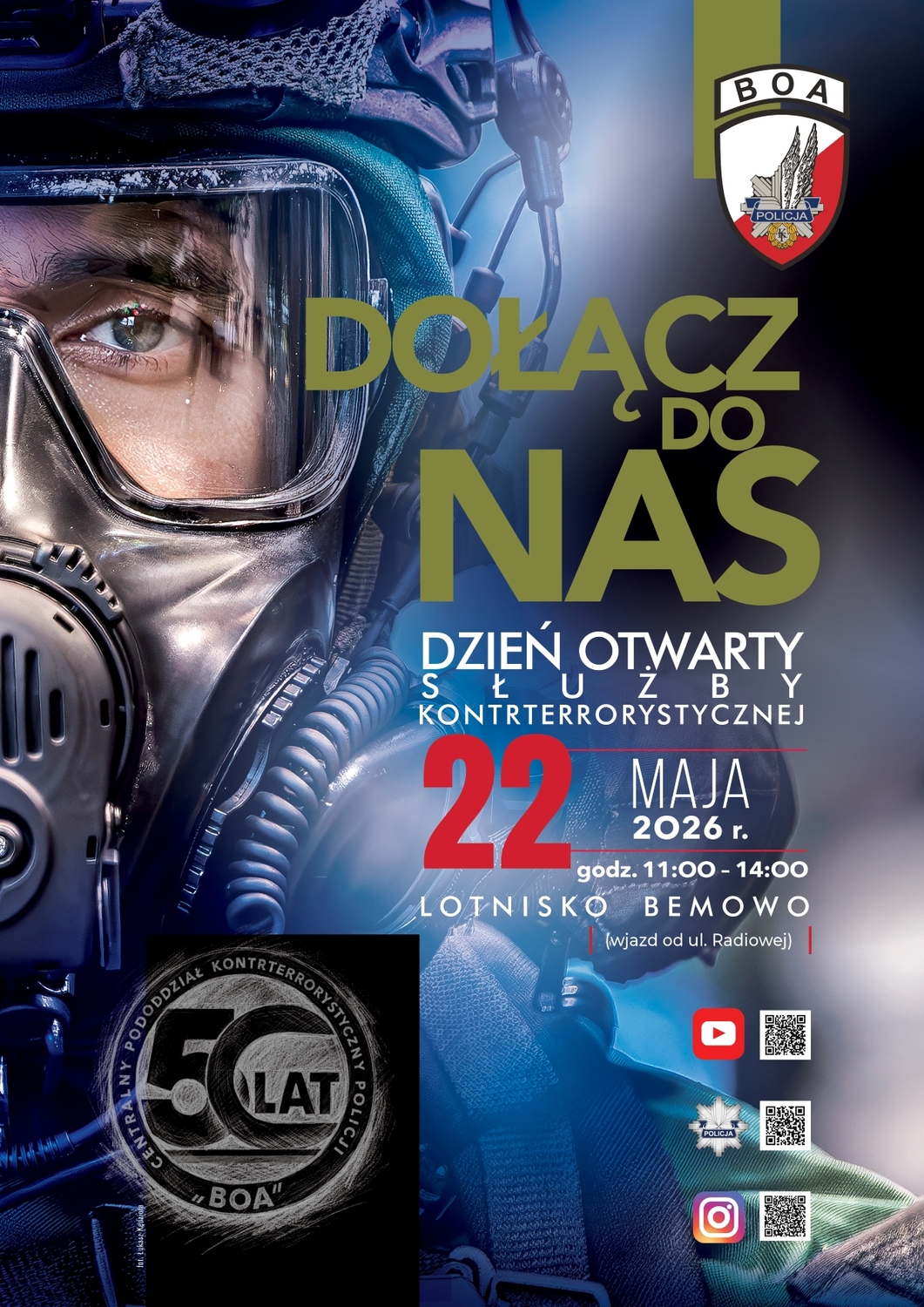 To niepowtarzalna okazja, by z bliska zobaczyć, jak wygląda służba w tej wyjątkowej jednostce Policji. Przedsmak tego, czego możesz się spodziewać podczas kolejnej edycji Dnia Otwartego, znajdziesz na naszym profilu na Instagramie cpkp_boa_official oraz stronie Centralnego Pododdziału Kontrterrorystycznego Policji „BOA”.
