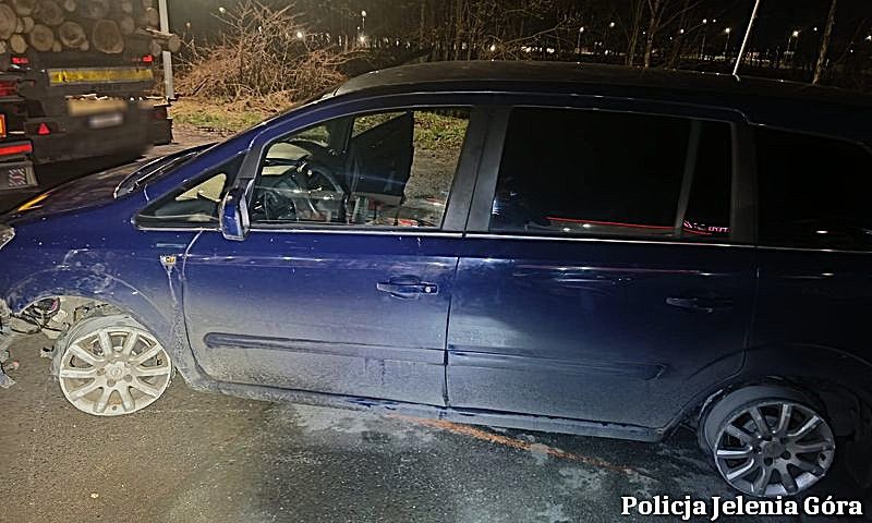 W nocy z 5 na 6 kwietnia 2026 roku policjanci zostali powiadomieni o pojeździe jadącym ze Szklarskiej Poręby w kierunku Piechowic. Z samochodu miały odpadać elementy, a dodatkowo w oponach nie było powietrza. Funkcjonariusze szybko namierzyli wskazany samochód na jednej ze stacji paliw w Piechowicach.