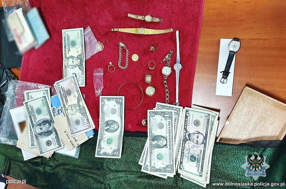 W miniony czwartek po godzinie 18:00 wałbrzyscy policjanci kryminalni otrzymali sygnał, że na terenie Piaskowej Góry może dojść do przestępstwa metodą „na policjanta”. Wytypowany został budynek, do którego miał przyjść młody mężczyzna po odbiór oszczędności życia 79-latki. Był to traf w dziesiątkę, gdyż chwilę później 22-latek opuścił klatkę schodową z czarną siatką schowaną pod kurtką. Podczas przeszukania mieszkańca Kamiennej Góry funkcjonariusze znaleźli przy nim sporą ilość gotówki w dolarach oraz złotą biżuterię. Wartość odzyskanego mienia oszacowana została łącznie na kwotę blisko 70 tysięcy złotych.