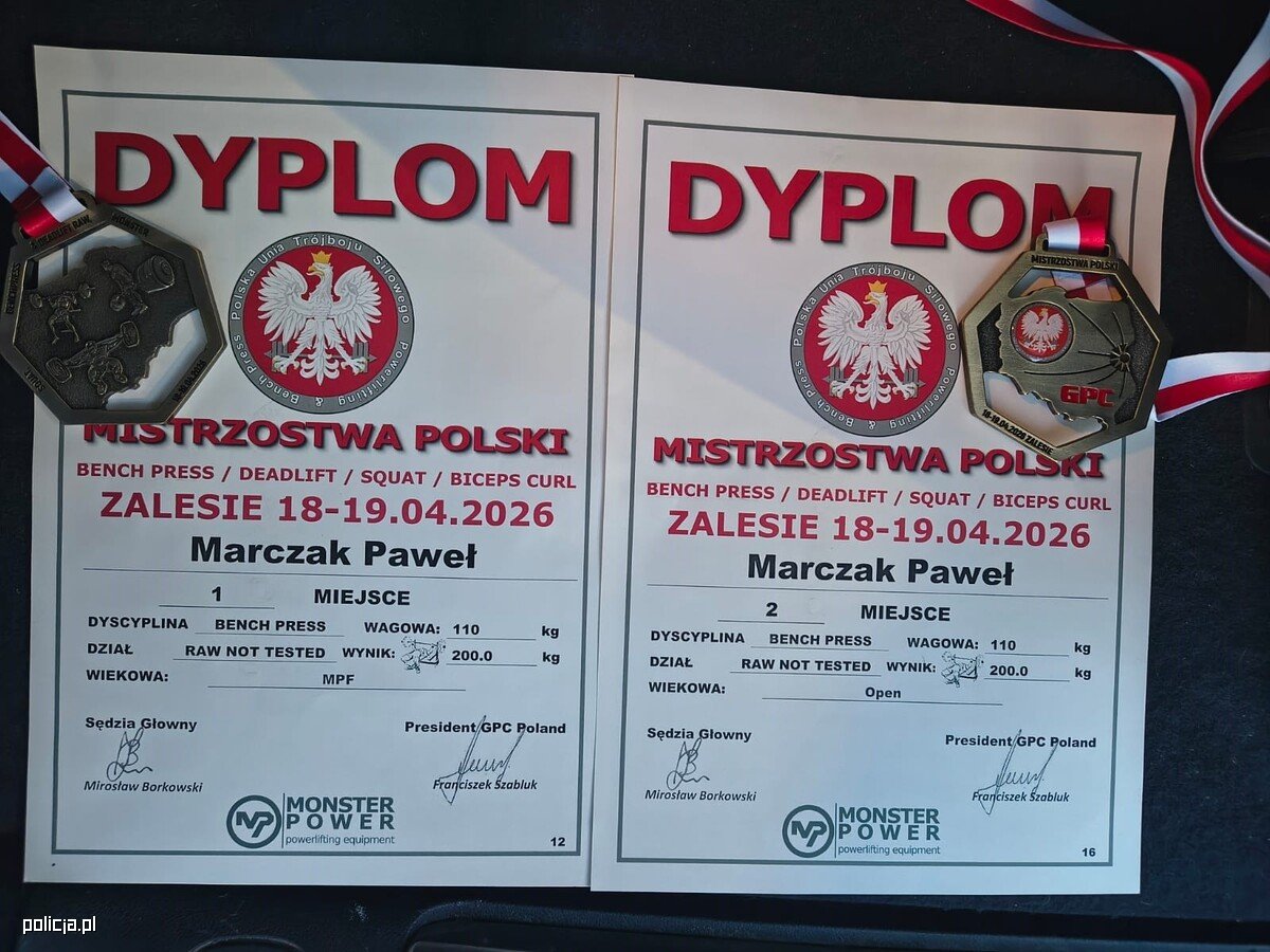 Sukcesy asp. Pawła Marczaka to efekt lat systematycznych treningów, ogromnej determinacji oraz sportowej pasji. Policjant od kilku lat z powodzeniem reprezentuje swoją jednostkę na arenie krajowej i międzynarodowej, zdobywając liczne medale i wyróżnienia. Swoją postawą pokazuje, że siła, konsekwencja i zaangażowanie prowadzą na najwyższe podium.