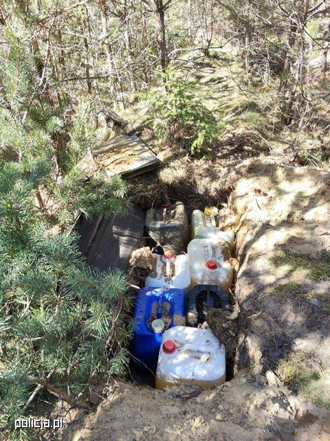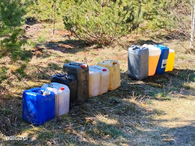 Dalsza praca kryminalnych z obu posterunków doprowadziła do odnalezienia kryjówki w lesie, gdzie zatrzymany mężczyzna ukrywał skradzione paliwo. 38-latek łącznie usłyszał cztery zarzuty kradzieży z włamaniem do zbiorników zaparkowanych sprzętów budowlanych i kradzieży łącznie blisko 1000 litrów oleju napędowego.