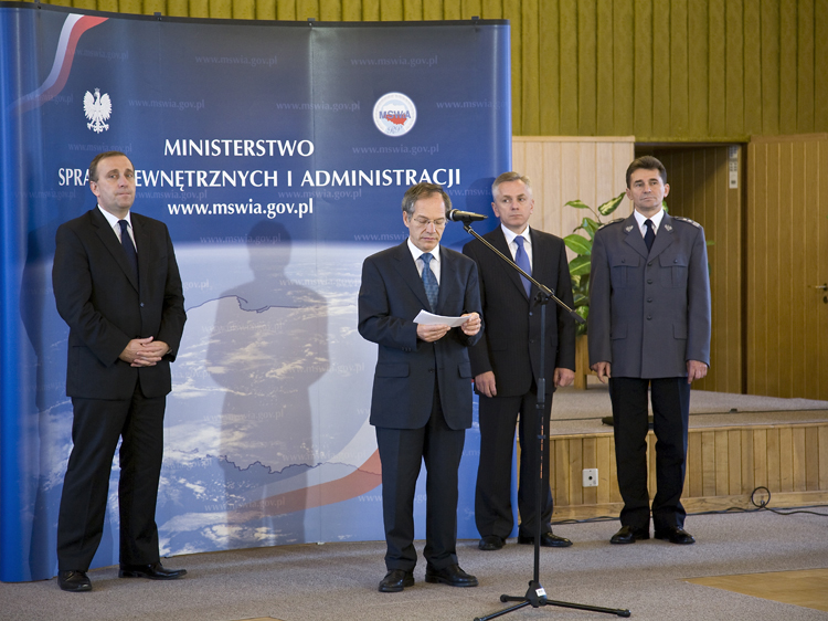 Dziś z policjantami, którzy wspomagali działania austriackiej i szwajcarskiej Policji podczas zabezpieczania rozgrywek piłkarskich Euro 2008 spotkał się Minister Spraw Wewnętrznych i Administracji Grzegorz Schetyna. Za profesjonalizm i wzorową służbę polskim funkcjonariuszom podziękował również ambasador Republiki Austrii w Polsce Alfred Längle. Nie zabrakło też słów uznania i wdzięczności od Podsekretarza Stanu Adama Rapackiego i Komendanta Głównego Policji.