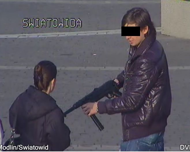 Z samego rana na skrzyżowaniu ulic Światowida i Modlińskiej pracownicy monitoringu z Białołęki dostrzegli, jak dwóch młodych mężczyzn celuje z karabinu maszynowego do przechodniów. Po wnikliwej obserwacji niecodziennego zjawiska, można był wywnioskować że na szczęście nie była to prawdziwa broń. Na nagraniu było jednak widać, przechodzących obok mężczyzn zbulwersowanych tym faktem ludzi. Niezwłocznie w związku z tym podjęto decyzję o wysłaniu patrolu Policji.