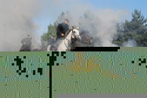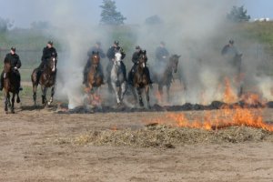 Jeźdźcy i konie na egzaminie musieli wykazać się umiejętnością jazdy w szykach, w różnego rodzaju konfiguracjach. Panowanie nad rumakami w niecodziennych dla koni warunkach – przy huku petard, broni automatycznej, w dymie, ogniu i to zarówno w grupie, jak i indywidualnie – to duża sztuka. Ale ani banda kibiców, w których rolę na egzaminie wcielili się funkcjonariusze oddziałów prewencji, ani rzucane przez nich butelki pozorujące kamienie nie przeraziły pododdziału policji konnej w Poznaniu.