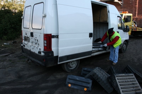Na widok radiowozu kierujący ducato zawrócił i wyjechał na trasę w kierunku Poznania, po chwili zatrzymał się. Z auta wysiadł jeden z pasażerów i zaczął wyciągać coś z części ładunkowej.
