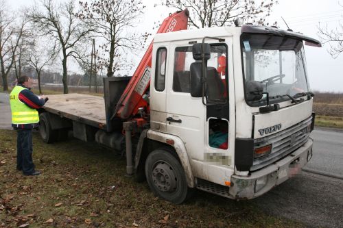 Policjanci zatrzymali ciężarówkę w Kocku na ul. Kleeberga. Pojazd miał wybitą szybę w kabinie i uszkodzoną stacyjkę. Kierowca nie chciał dobrowolnie opuścić kabiny, był agresywny i nie reagował na polecenia policjantów. Funkcjonariusze musieli użyć wobec niego siły.