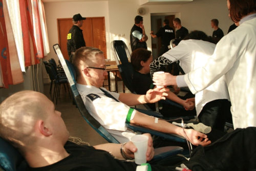 Wczoraj w Ośrodku Szkolenia Policji w Łodzi z siedzibą w Sieradzu odbyła się kolejna akcja honorowego krwiodawstwa. Ten najcenniejszy dar oddało 29 kursantów szkolenia podstawowego oraz 3 funkcjonariuszy kadry dydaktycznej. Łącznie przekazano ponad 14 litrów krwi, która trafiła do banku Regionalnego Centrum Krwiodawstwa w Łodzi. Po honorowym oddaniu krwi policjanci otrzymali czekolady, które już zgodnie z tradycją postanowili przekazać dzieciom z Domu Dziecka.