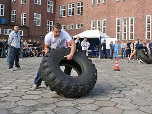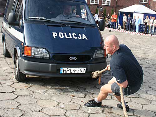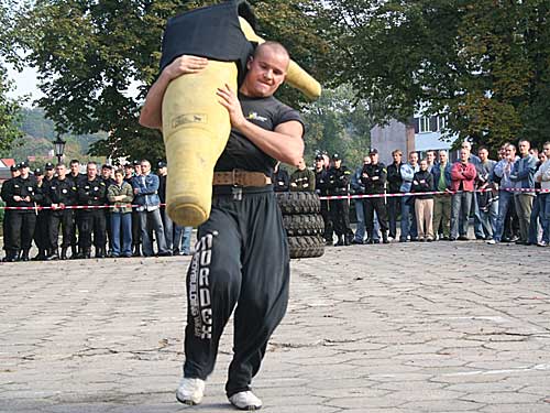 Przeciąganie radiowozu, spacer dzielnicowego i transport policjanta – to niektóre z konkurencji podczas Mistrzostw Strongmanów, które odbyły się w Szkole Policji w Słupsku. W zmaganiach wzięło udział dwunastu najsilniejszych słuchaczy szkoły, którzy przebywają na kursie podstawowym. Najsilniejszym z silnych okazał się posterunkowy Karol Witkowski z Warszawy.Każdy z zawodników musiał przeciągnąć radiowóz na określoną odległość, przejść z ważącymi 70 kilogramów teczkami a także przenieść manekina ubranego w kamizelkę kuloodporną. Przy gorącym dopingu trzeba było również jak najdłużej utrzymać na wyciągniętych ramionach obciążnik oraz przetoczyć i ułożyć opony.