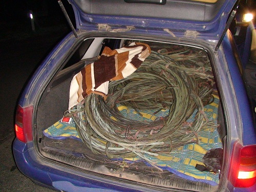 Według ustaleń policjantów szajka działała na terenie całego kraju, dokonując zniszczeń wielu trakcji. Do zatrzymania doszło na terenie województwa łódzkiego. W działaniach uczestniczyli policjanci z Ostrołęki oraz z Radomia, Płocka i Ciechanowa. Policjanci do akcji przystąpili w nocy w powiecie łęczyckim. W zatrzymanym fordzie mondeo, którym jechały dwie osoby, znajdowało się około 850 kg pociętego drutu miedzianego, który pochodził z kradzieży w powiecie poddębickim. Prawie równocześnie w powiecie łowickim policjanci zatrzymali audi A-6, w którym dwaj mężczyźni przewozili złodziejskie akcesoria: nożyce do cięcia drutów zaopatrzone w zaizolowane bambusowe przedłużki, rękawice gumowe, specjalne ubrania i buty ochronne.
