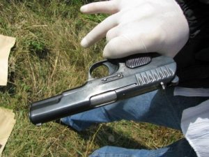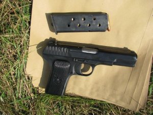 W wyniku intensywnej pracy świętokrzyskich kryminalnych zatrzymano na terenie powiatu jędrzejowskiego dwóch mężczyzn, którzy chcieli najprawdopodobniej dokonać nielegalnej transakcji. Przedmiotem „targów” miała być broń palna i amunicja. Mężczyźni na widok policjantów z brygady antyterrorystycznej próbowali ratować się ucieczką. Jeden z nich odrzucił w zarośla przedmiot, którym – jak się okazało – był pistolet TT wraz z magazynkiem załadowanym ostrą amunicją. W samochodzie 42-letniego mieszkańca Olkusza śledczy znaleźli również rewolwer kal. 6 mm wraz z „nabojami” oraz magazynek do KBK AKMS załadowany amunicją.