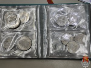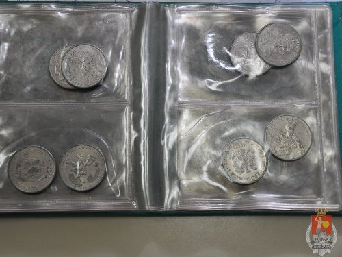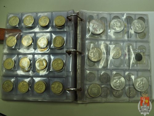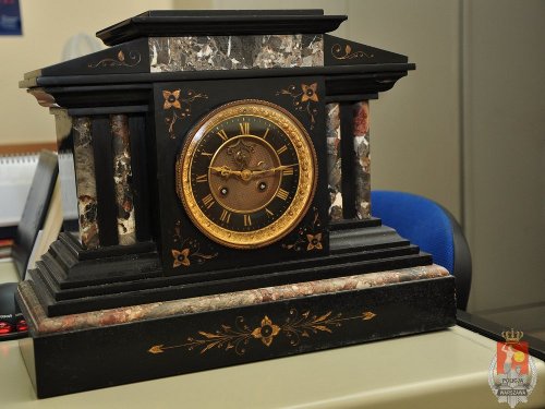 Wśród zabezpieczonych rzeczy znajduje się spora ilość monet, a także bardzo charakterystyczny zegar.