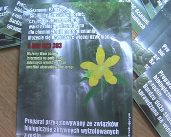 Swoje specyfiki reklamował też w ulotkach oraz w ogólnopolskich gazetach. Ulotki roznosiły po szpitalach onkologicznych jego pracownice. Pacjentom polecał przyjmować swoje specyfiki trzy razy dziennie przez trzy miesiące. Sugerował, że w tym czasie należy odstawić inne leki i konwencjonalne metody leczenia. Dzienna kuracja kosztowała u "cudotwórcy" ok. 1000 zł, zatem cała blisko 90 tys. zł. By się jej poddać, nieuleczalnie chorzy ludzie wyzbywali się wszelkich kosztowności, a czasem nawet sprzedawali swe mieszkania.