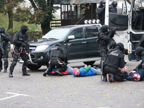 Do zatrzymania porywaczy przystąpią policyjni antyterroryści z Komendy Wojewódzkiej Policji w Radomiu przy wykorzystaniu śmigłowca – będącego w dyspozycji Komendy Głównej Policji. Działania ubezpiecza kolejna grupa SAT przemieszczająca się samochodem. W wyniku wymiany ognia ranny zostaje jeden ze sprawców, jak również następuje uszkodzenie płaszcza cysterny. Zatrzymani sprawcy zostają przetransportowani do jednostki Policji, przy wykorzystaniu pojazdu Straży Granicznej. Do akcji przystępuje Państwowa Straż Pożarna, która przejmuje dowodzenie działaniami ratowniczymi. Ranny zostaje odtransportowany przez śmigłowiec Lotniczego Pogotowia Ratunkowego.