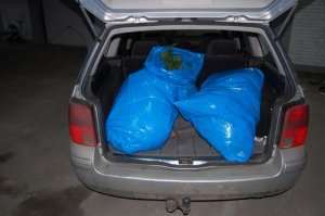 Kierowca srebrnego passata nie zatrzymał się do kontroli drogowej, kilka kilometrów dalej porzucił pojazd. Policjanci z Wieliszewa w bagażniku auta znaleźli dwa worki świeżo ściętych łodyg i gałęzi konopi indyjskiej. Zatrzymano już w tej sprawie dwie osoby a prokuratorskie śledztwo wyjaśni wszystkie szczegóły tego zdarzenia.