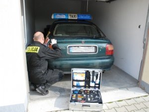 Informację o zdarzeniu przekazano niezwłocznie funkcjonariuszom. We wskazany rejon oficer dyżurny skierował radiowozy. Jeden z policyjnych patroli zauważył poszukiwany pojazd i stróże prawa przystąpili do jego zatrzymania. Kierowca nie reagował na polecenia policjanta i uciekając zawadził taksówką o radiowóz, raniąc tym samym funkcjonariusza. Kilka kilometrów dalej sprawcy wjechali do przydrożnego rowu, gdzie porzucili pojazd.