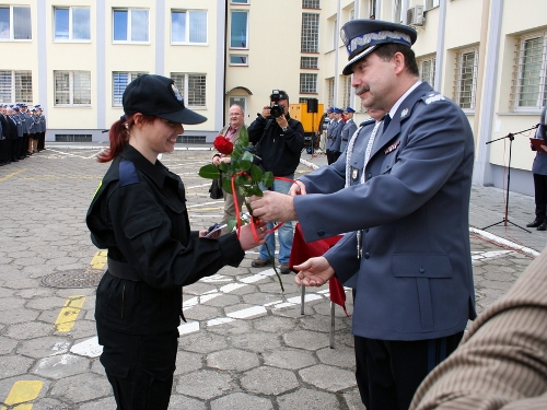 Następnie na dziedzińcu komendy wojewódzkiej odbyło się uroczyste ślubowanie nowo przyjętych policjantów. Szeregi kujawsko-pomorskiej Policji zasiliło w sumie 59 funkcjonariuszy, w tym 30 osób przyjętych z „cywila”, wśród których są również trzy panie oraz 29 osób po odbyciu zastępczej służby wojskowej. Nowi funkcjonariusze będą pełnić służbę w jednostkach województwa i Oddziale Prewencji Policji, m.in. 8 policjantów w Komendzie Miejskiej w Bydgoszczy, 5 w Grudziądzu, 6 w Toruniu oraz 4 we Włocławku.