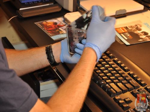Gdy funkcjonariusze wkroczyli rano pod ustalony adres, odkryli nielegalną wytwórnię odzieży oznaczanej zastrzeżonymi znakami światowych firm. W jednym z pokojów zabezpieczono: maszynę do sitodruku, farby, lampy, folie do sitodruku z logo różnych firm odzieżowych, znaczne ilości metek i etykiet, naklejki i maszynę do szycia.