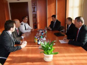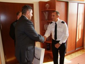 Posterunkowy Jan Rudge z Southapton hr. Hampshire reprezentujący angielską Policję, na co dzień pracujący w służbach prewencyjnych oraz Jorg Pinski i Mathies Thoms, nadkomisarze z Dolnej Sakosoni w Niemczech pracujący w służbach kryminalnych byli dzisiaj gośćmi Wielkopolskiego Komendanta Wojewódzkiego Policji w Poznaniu młodszego inspektora Krzysztofa Jarosza.