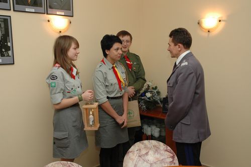 Betlejemskie Światło Pokoju – symbol ciepła, miłości, pokoju i nadziei, który za pośrednictwem skautów wędruje prawie po całej Europie - dotarło dzisiaj do Komendy Głównej Policji. Z rąk przedstawicieli Związku Harcerstwa Polskiego, w imieniu wszystkich polskich policjantów i pracowników cywilnych, światełko odebrał Komendant Główny Policji gen. insp. Andrzej Matejuk.