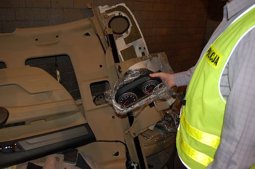 Policjanci, po tym jak zatrzymali mężczyznę przewożącego busem kradzione podzespoły samochodowe, ujawnili różne miejsca, w których składował on części aut. Przeszukali wynajmowane przez niego garaże na terenie Konina oraz cały przyległy teren jego posesji - znaleziono tam części karoseryjne i mechaniczne skradzionego w zeszłym roku roku peugeota 607 i skradzionego na terenie Warszawy bmw. Ponadto policjanci zabezpieczyli kilkanaście silników samochodowych, komputery pokładowe i inne podzespoły. Zabezpieczone części zabezpieczono do badań mechanoskopijnych, które wykażą, z jakich pojazdów pochodziły znalezione elementy.