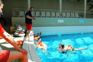 Ćwiczyli umiejętności pływania i podejmowanie akcji ratowniczej w utrudnionych warunkach, udzielanie pierwszej pomocy: resuscytację dorosłych i dzieci, użycie defibrylatora, rurki ustno-gardłowej, maski tlenowej, postępowanie w przypadku wstrząsu termicznego.