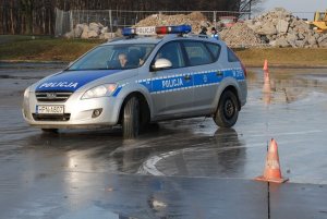 Dzisiaj od rana kolejna grupa funkcjonariuszy Policji i Inspekcji Transportu Drogowego przechodziła szkolenie doskonalące technikę jazdy samochodami. Zajęcia rozpoczęły się od przygotowania teoretycznego, na którym omówiono nieprawidłowe zachowania za kierownicą i ich skutki. Następnie wszyscy uczestnicy szkolenia mogli przećwiczyć prawidłowość własnych reakcji za kierownicą aut.