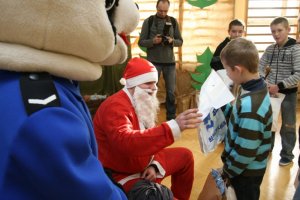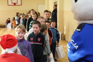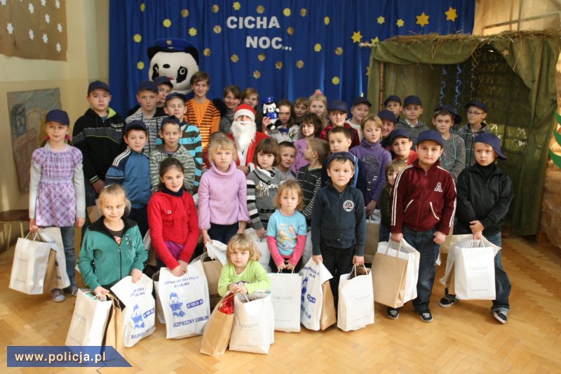 Bezwzględność przestępców i ich nieczułość na krzywdę dzieci głęboko poruszyła funkcjonariuszy, którzy postanowili przywrócić uśmiech na dziecięcych twarzach. Mundurowi wspólnie z przedstawicielami Telewizji Lublin zorganizowali mikołajki. Dzisiaj o godz. 10.00 św. Mikołaj w asyście policyjnej maskotki – sierż. Poli zagościli w szkole w Warszawiakach. Towarzyszyli im policjanci z Wydziału Prewencji KMP w Lublinie, komendant Komisariatu Policji w Bełżycach, dzielnicowy oraz przedstawiciele TV Lublin. Przyjazd niespodziewanych gości wzbudził radość uczniów.