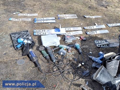 Podczas przeszukania garaży i pomieszczeń gospodarczych policjanci odnaleźli także tablice rejestracyjne pochodzące ze skradzionych na terenie województwa pomorskiego samochodów. Interweniujący w tej sprawie funkcjonariusze zabezpieczyli również znaczną ilość elektronarzędzi i części samochodowych. Gdy policjanci wkroczyli na posesję przestępcy kończyli rozkręcanie jednego z aut.
