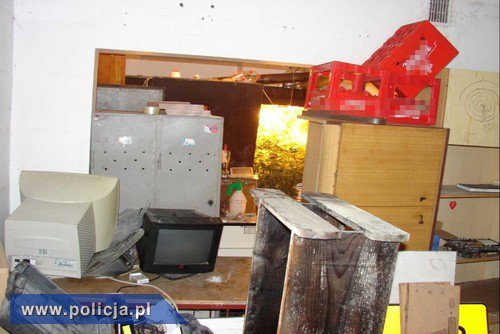 Wczoraj (08.05.2012 r.) około godz. 15:00 funkcjonariusze weszli na teren posesji i przeszukali dom jednorodzinny, zabudowania gospodarcze i garaż. W pomieszczeniu, w którym kiedyś był sklep, w namiocie rozbitym wewnątrz budynku, znaleźli plantację konopi indyjskich. Uprawa wyposażona była w specjalne wentylatory i lampy nagrzewające. Zabezpieczono 30 szt. konopi w różnej fazie wzrostu, od 160-170 cm. Oprócz tego policjanci zabezpieczyli ponad 120 gramów marihuany, która częściowo była poporcjowana w małych, foliowych woreczkach tzw. dilerówkach oraz wagę służącą prawdopodobnie do porcjowania.