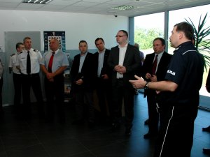 Posłowie z sejmowej komisji administracji i spraw wewnętrznych oraz podsekretarz stanu w MSW Michał Deskur wizytowali dzisiaj Policyjne Centrum Dowodzenia w Legionowie. Gości po policyjnych obiektach oprowadzał komendant główny nadinsp. Marek Działoszyński. Posłowie mieli okazje zobaczyć z bliska jak będzie wyglądała służba funkcjonariuszy pracujących w sztabie przy zabezpieczeniu mistrzostw EURO 2012.