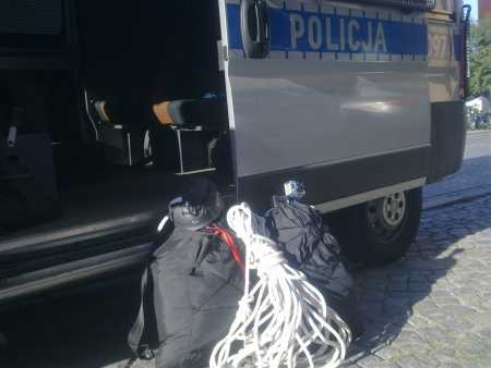 Dziś rano Wrocławscy policjanci brali udział w dość nietypowej interwencji. Po otrzymaniu zgłoszenia od mieszkańców, że ktoś ma wspinać się na Iglicę przy Hali Stulecia we Wrocławiu dyżurny niezwłocznie skierował na miejsce patrol. Nie małe było zdziwienie funkcjonariuszy jadących ulicą Wróblewskiego, gdy zauważyli skoczków spadochronowych, którzy opadali po skoku z 96 metrowej Iglicy.