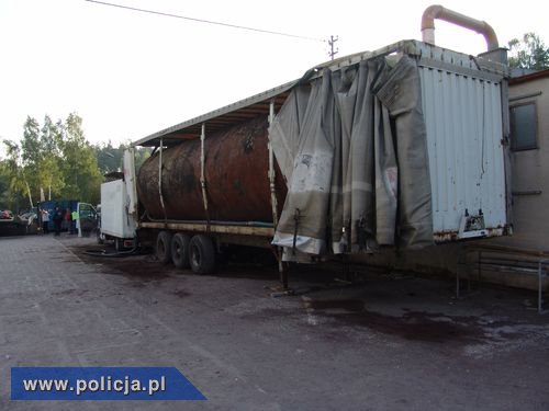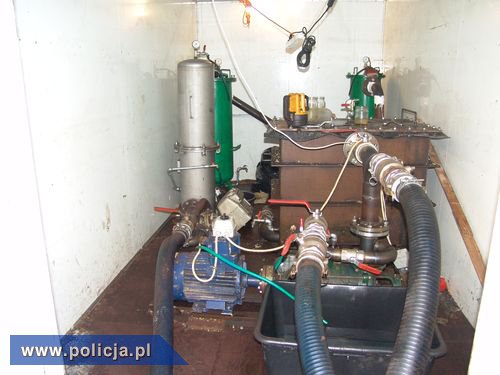 Funkcjonariusze znaleźli na posesji przystosowaną do przestępczej działalności przewoźną linię technologiczną do przerabiania oleju opałowego na olej napędowy. Urządzenia filtrujące znajdowały się w przestrzeni ładunkowej samochodu dostawczego, który mógł przemieszczać się w dowolne miejsca. Zbiornik o pojemności ok. 50 tys. litrów, do którego zlewano olej opałowy, a który także był częścią linii technologicznej, znajdował się na zamaskowanej naczepie samochodu ciężarowego, pod plandeką.