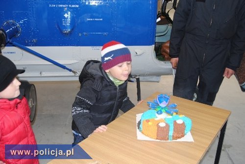 Na terenie Oddziału Prewencji Policji w Łodzi Dominik obejrzał specjalistyczne samochody policyjne, „rozbrajał materiały wybuchowe" za pomocą robota, zapoznał się z pracą antyterrorystów, obejrzał hangary oraz policyjne śmigłowce. Ostatnim punktem programu był wymarzony lot śmigłowcem, który odbył się w ramach zaplanowanego treningu. Wiedząc, że Dominik wczoraj skończył 5 lat, został obdarowany pysznym tortem. Jubilat, zdmuchując świeczkę, pomyślał o nowym marzeniu - chce zostać pilotem.