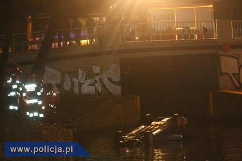 Pijany wpadł autem do kanału. Policyjny wywiadowca wskoczył do wody i uratował kierowcę i pasażera