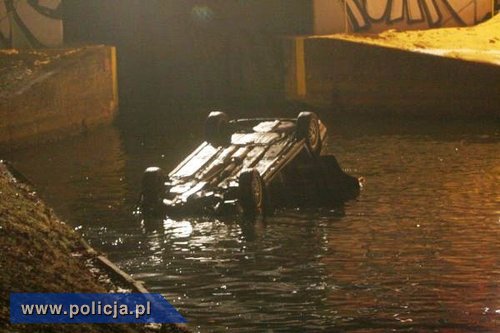 W piątek około godziny 20.30 oficer dyżurny policji w Ostródzie został poinformowany, że w rejonie skrzyżowania dwóch ulic do kanału wpadł samochód. Na miejsce od razu skierowano patrole Policji, Straż Pożarną i Pogotowie Ratunkowe. W wypełnionym na około 1,5 metra wodą kanale, na dachu leżał samochód. O własnych siłach i z pomocą przechodnia wysiedli z niego dwaj pasażerowie. Kierowca i pasażer siedzący obok niego byli przypięci pasami i nie mogli wydostać się z auta. Policyjny wywiadowca wskoczył do wody, wyciągnął mężczyzn z samochodu i pomógł im bezpiecznie wyjść na brzeg. Wszyscy uczestnicy zdarzenia najpierw trafili do szpitala, a następnie do komendy.