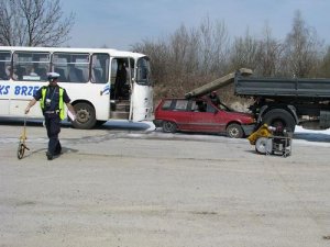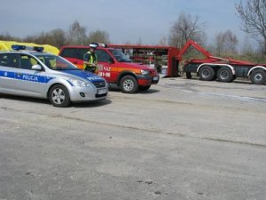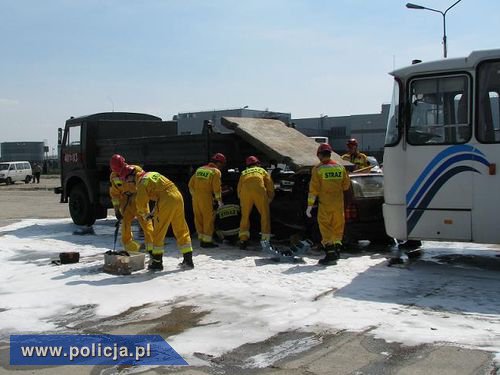 Pierwsza część ćwiczeń odbyła się na dawnej płycie lotniska w Skarbimierzu Osiedle. Według założenia w miejscu opłat przy wjeździe na autostradę dochodzi do wypadku drogowego. Kierujący autobusem przewożącym 30 pasażerów w skutek nagłego zatrzymania krążenia traci przytomność. Autobus uderza w samochód osobowy i wpycha go pod ciężarówkę. Kierujący osobówką zostaje uwięziony w pojeździe. Policjanci w ramach tej części ćwiczeń wykonywali między innymi zadania związane z organizacją zabezpieczenia miejsca zdarzenia, wyznaczenia objazdów oraz zorganizowania płynnego ruchu pojazdów służb ratunkowych.
