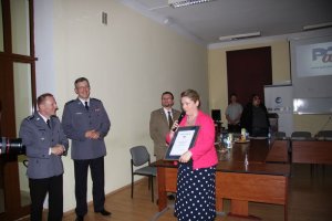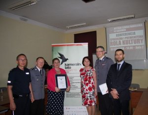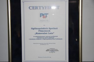Następnie insp. Grzegorz Jach przekazał w ręce dyrektor artystycznej "Kameralnego Lata" Anny Wróblewskiej certyfikat "Wspiera nas PaT". Wyróżnienie zostało przyznane dla festiwalu za upowszechnianie twórczej profilaktyki rówieśniczej wśród młodzieży i kreatywne działania w Ogólnopolskiej Nocy Profilaktyki.