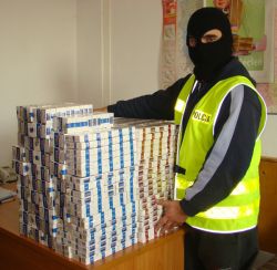 Policjanci weszli w posiadanie informacji, że 38 - latek wykorzystuje pustostan przy ul.1 Maja jako magazyn, w którym przechowuje papierosy. Dalej trafiają one na rynek. Handlarz pojawił się wczoraj wieczorem w wytypowanym lokalu. Chwilę później do tych drzwi zapukali funkcjonariusze. Mężczyzna był zupełnie zaskoczony. Po przeszukaniu pomieszczeń policjanci ujawnili i zabezpieczyli 5890 paczek papierosów różnych marek bez polskich znaków akcyzy. Łączna wartość zabezpieczonego towaru wynosi nie mniej niż 36.000zł.