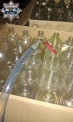 Policjanci zwalczający przestępczość gospodarczą z KWP w Katowicach, wspólnie ze śląskimi celnikami, zlikwidowali nielegalną wytwórnię i rozlewnię alkoholu. Zabezpieczono blisko 3300 litrów "lewych" wyrobów spirytusowych o wartości ponad ćwierć miliona złotych. W ręce funkcjonariuszy wpadły trzy osoby zamieszane w przestępczy proceder.